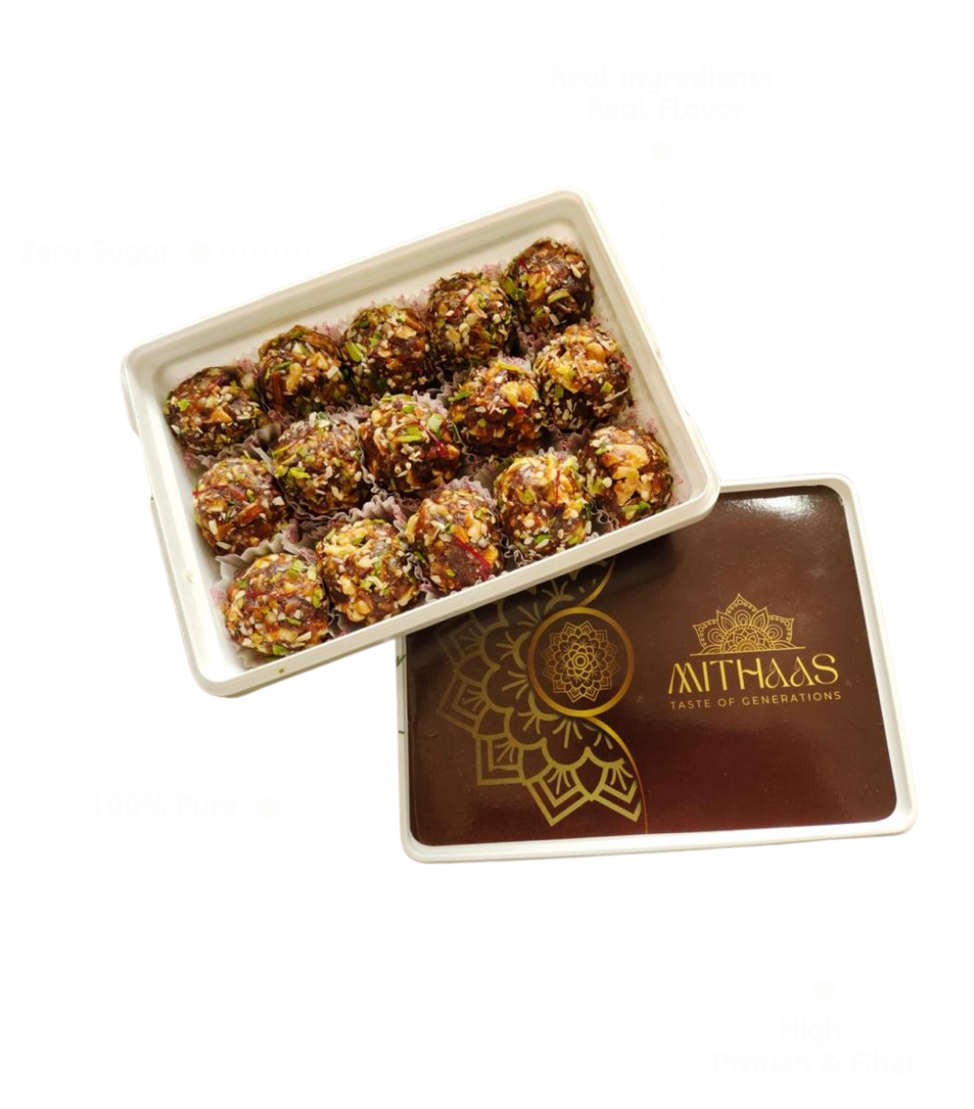 Our journey began with a simple thought: Why settle for ordinary when the sweetest moments of life deserve something extraordinary? From this belief came our artisanal creations — sweets crafted with premium dry fruits, pure cow ghee, saffron strands, and the warm aroma of cardamom. No shortcuts, no added sugar — only nature’s own richness, handpicked and perfected.